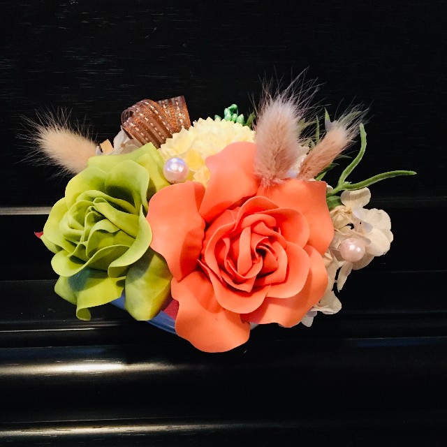 秋色のソープフラワーのアレンジメントのワークショップです。ソープフラワーのほのかな香りで癒されながらのひと時を体験しませんか?
